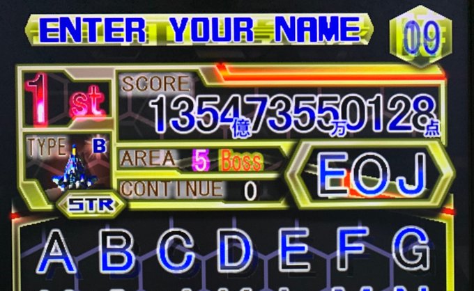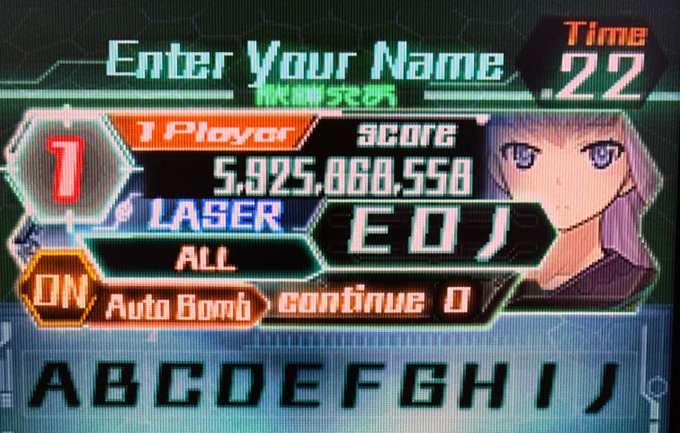 Sort of a laughable end to this run. I was on the last phase of the ST5 Boss, had a level 4 hyper in stock and one bomb. I moved in and activated the hyper to finish off the boss, but must have been a split second too late, since my autobomb went off, quickly followed by a death as I stared at the screen in disbelief. If not for that bizarre mistake this would have been over 9bil.